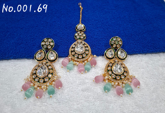 DESIGNER PARTY WEAR KUNDAN EARRING AND MANGTIKA