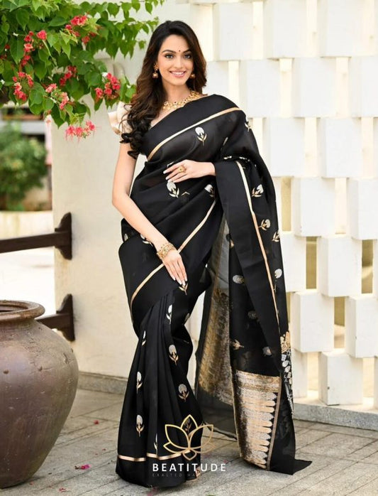 ATTRACTIVE SOFT ZIMMY CHOO SILK SAREE WITH PRE-STITCHED BLOUSE