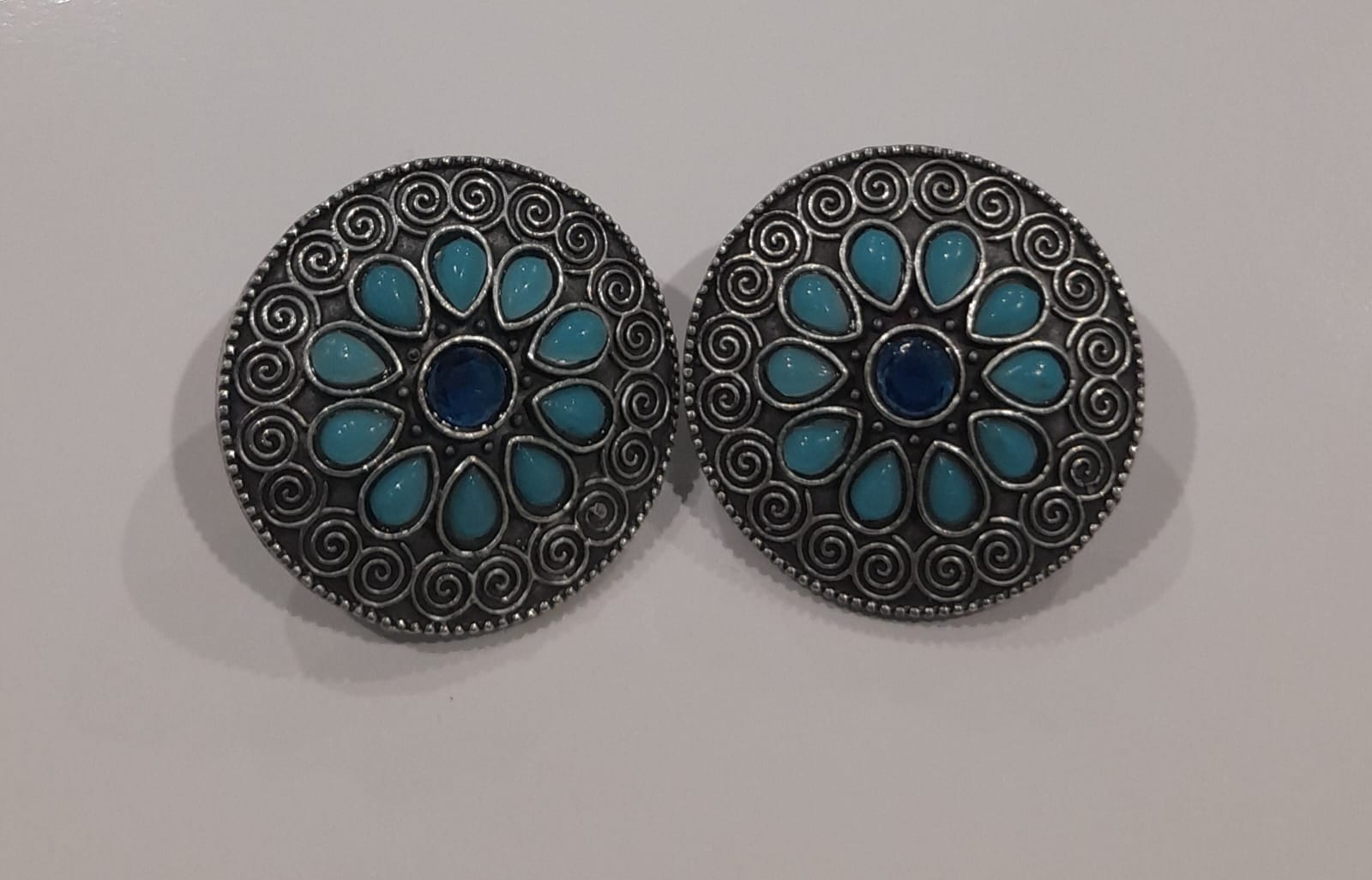 BEAUTIFUL GERMAN SILVER STUD- AQUA