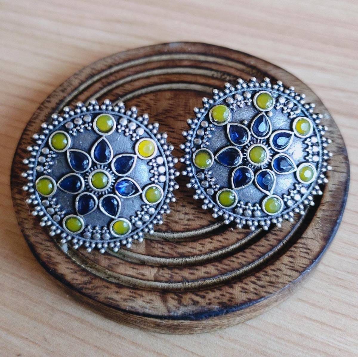 BEAUTIFUL GERMAN SILVER STUD - NAVY BLUE AND MUSTARD