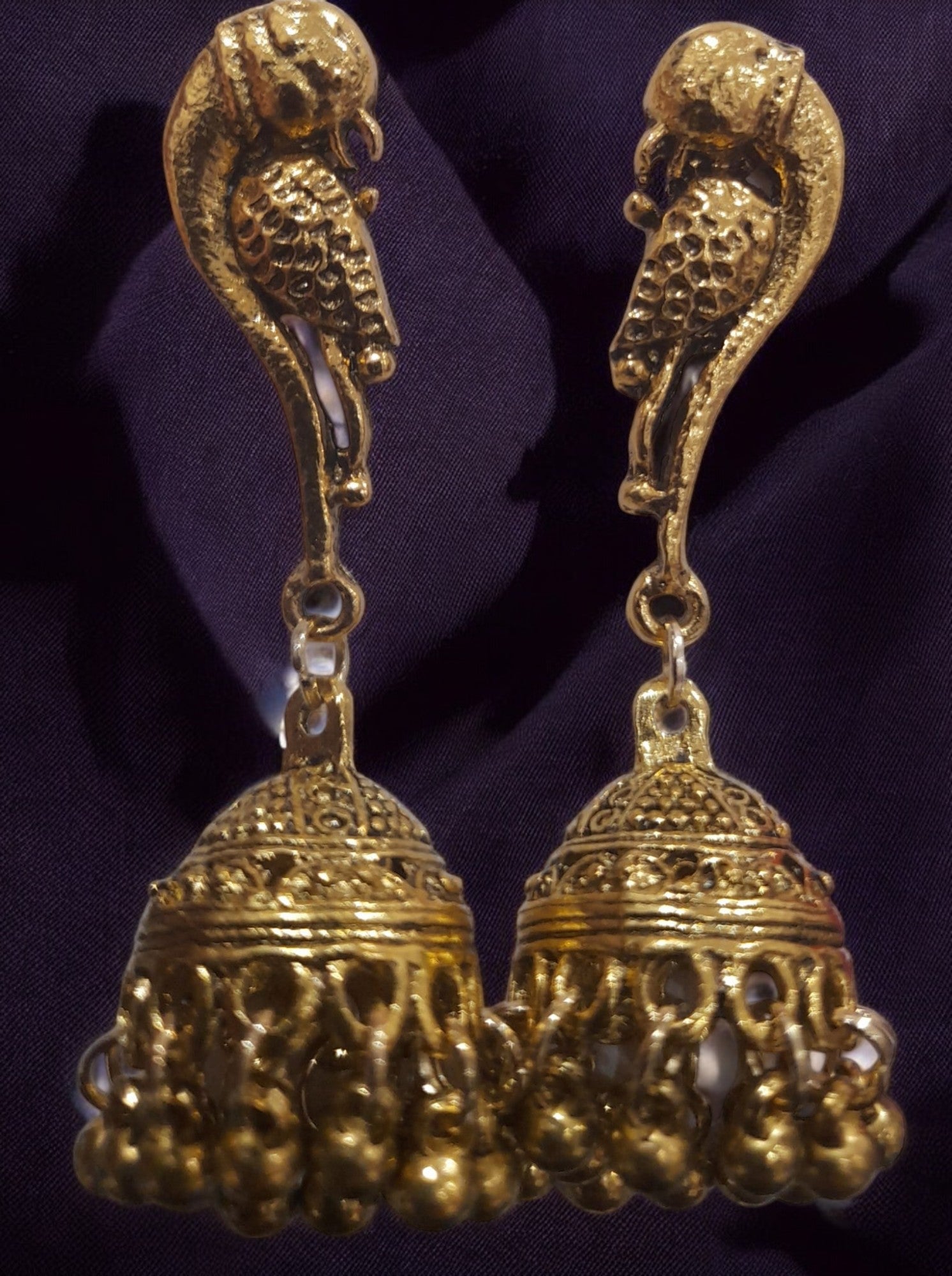 BEAUTIFUL OXIDISED GOLD LONG EARRING