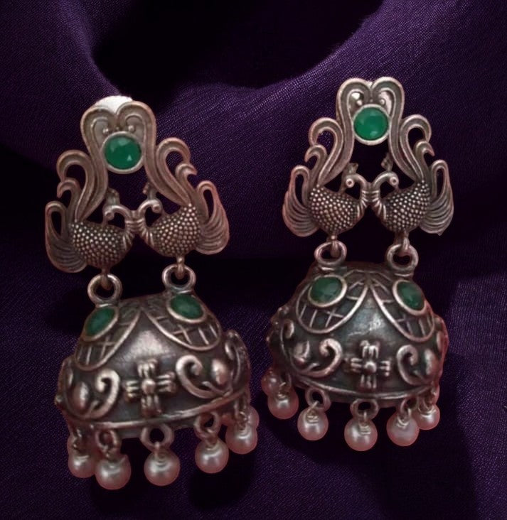 BEAUTIFUL STATEMENT OXIDISED EARRING - GREEN
