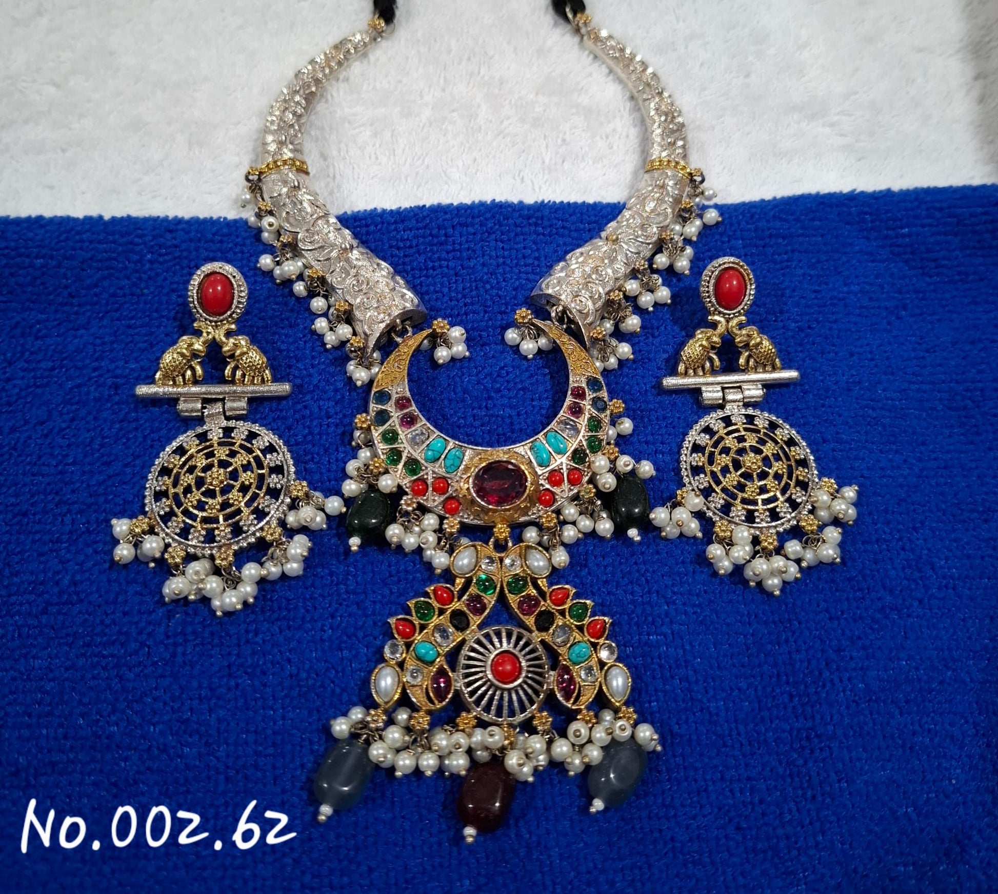 DESIGNER TRENDY FUSION DUAL TONE NECKLACE WITH EARRING - MULTI