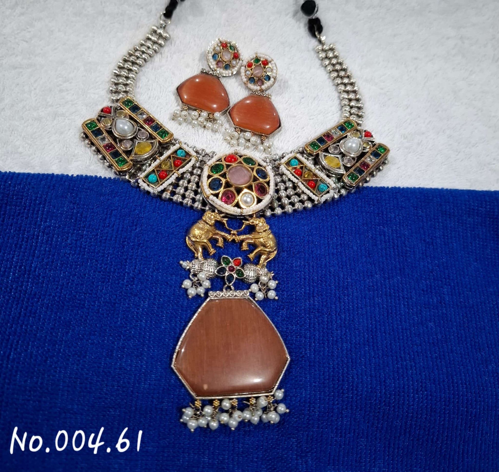 FUSION TRENDY HEAVY NECKLACE WITH EARRING - PEACH