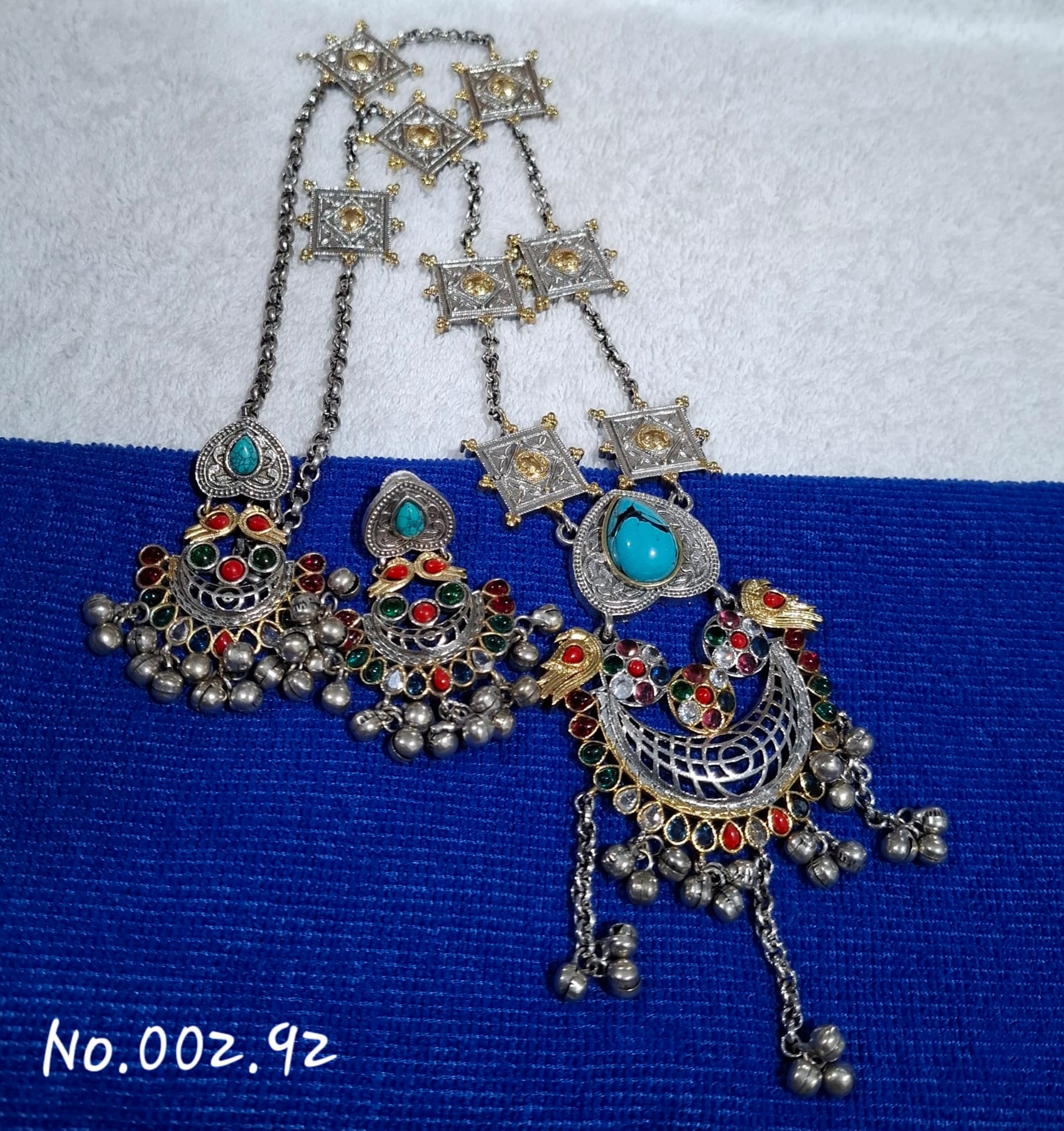 FUSION TRENDY LONG NECKLACE WITH EARRING- AQUA