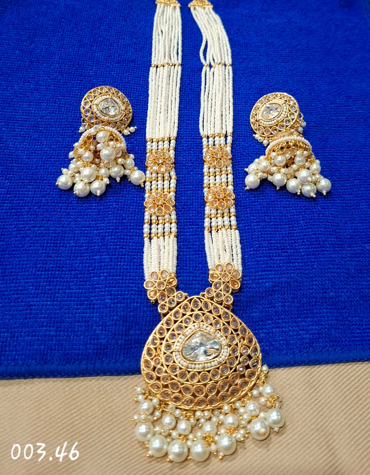 HEAVY LONG NECKLACE WITH JHUMKI - CLEAR