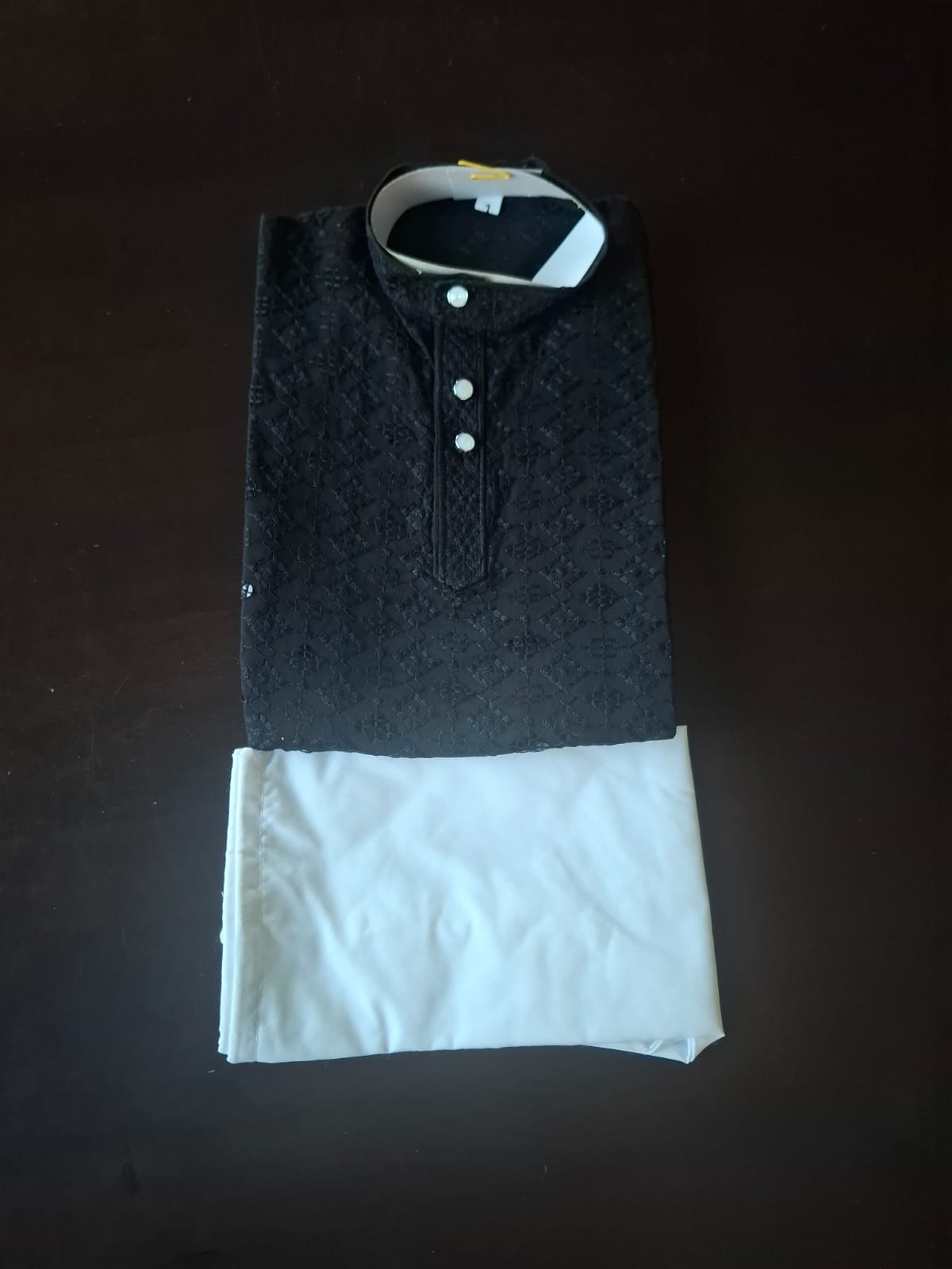 KIDS REYON SEQUENCE KURTA PYJAMA - BLACK