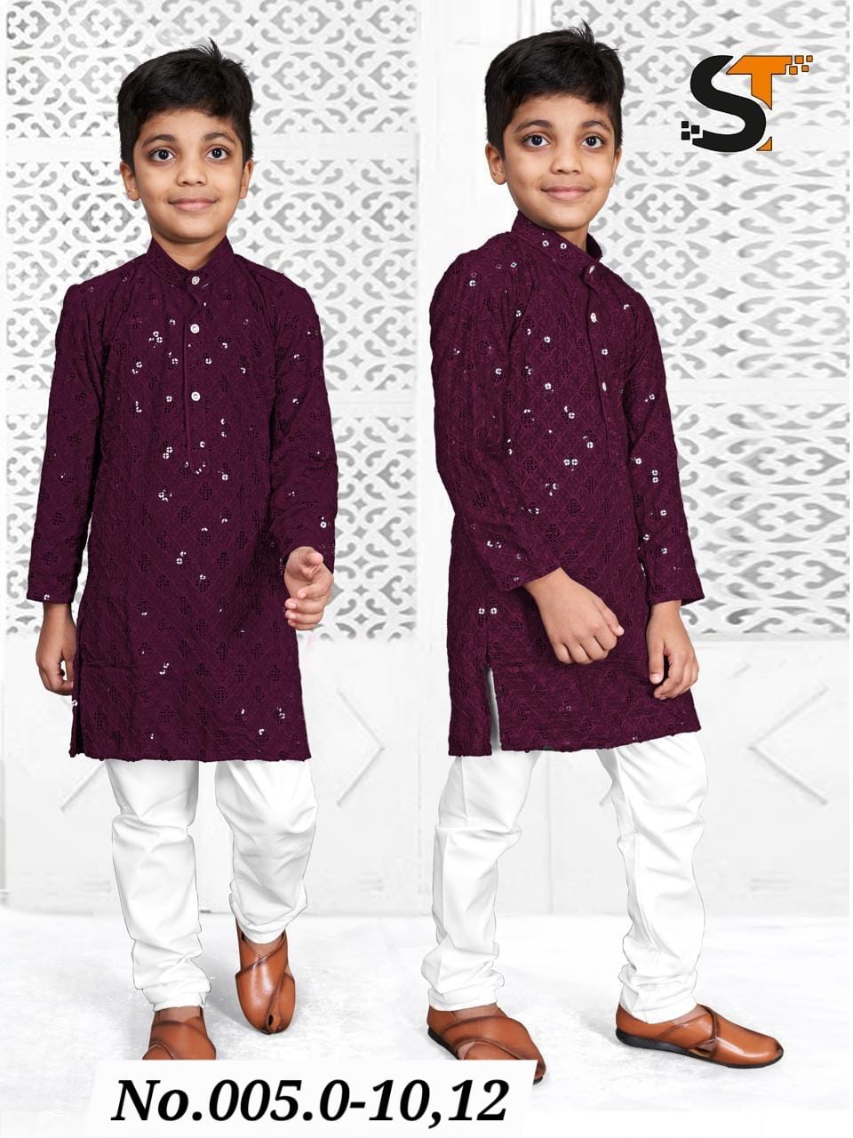 KIDS SEQUENCE KURTA PYJAMA - WINE