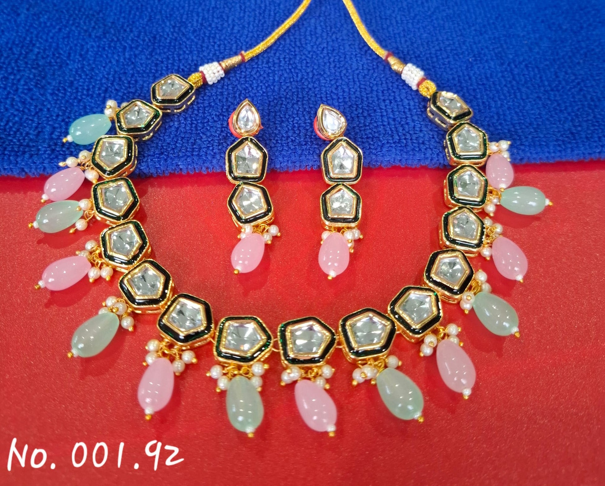 KUNDAN MINT PINK COLOUR NECKLACE WITH HEAVY EARRING