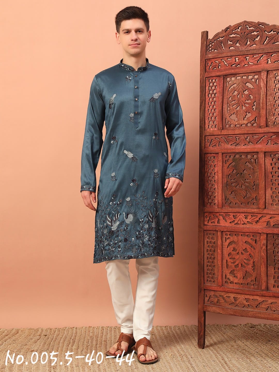 MEN’S KURTA PYJAMA HEAVY SMART SILK - SEA BLUE
