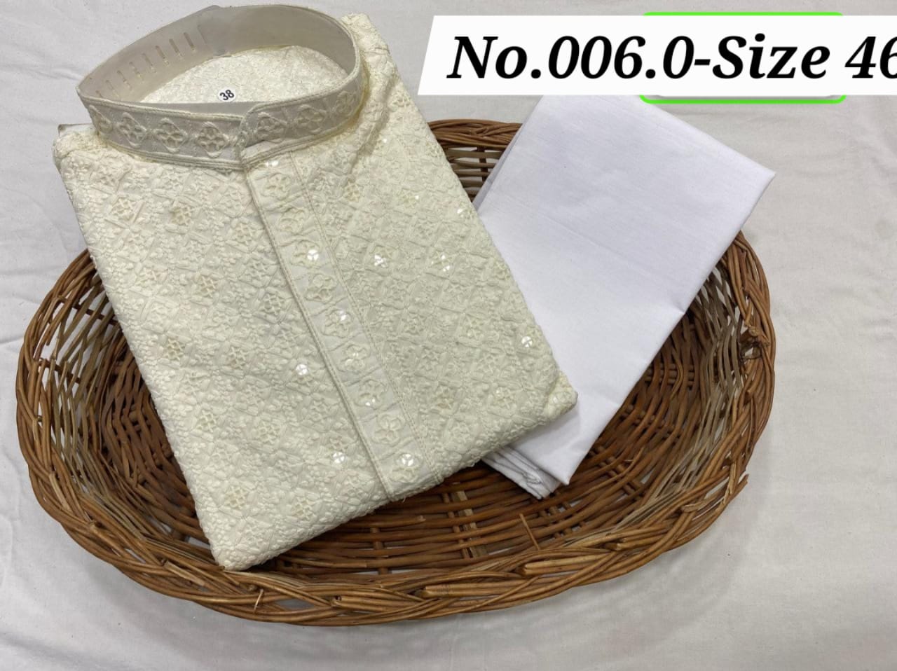 MEN’S KURTA PYJAMA - REYON SEQUENCE WORK - CREAM