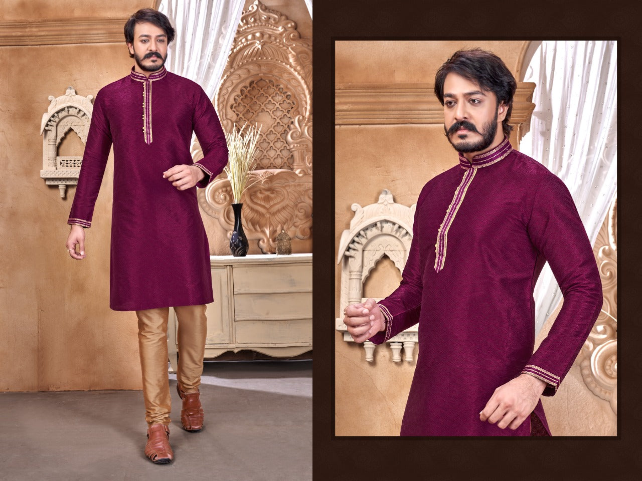 Traditional Indian Wear Long Kurta made from Art Silk and embroidery work. The solid style pattern adds to the regal style of the kurta. Traditionally worn over Indian Polo Pant  but can also be worn over Denims or Linen Pants.