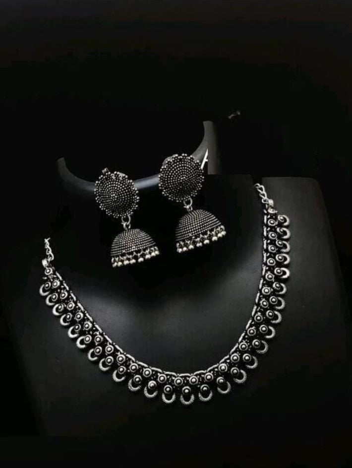 OXIDISED SILVER CHOKER WITH JHUMKI