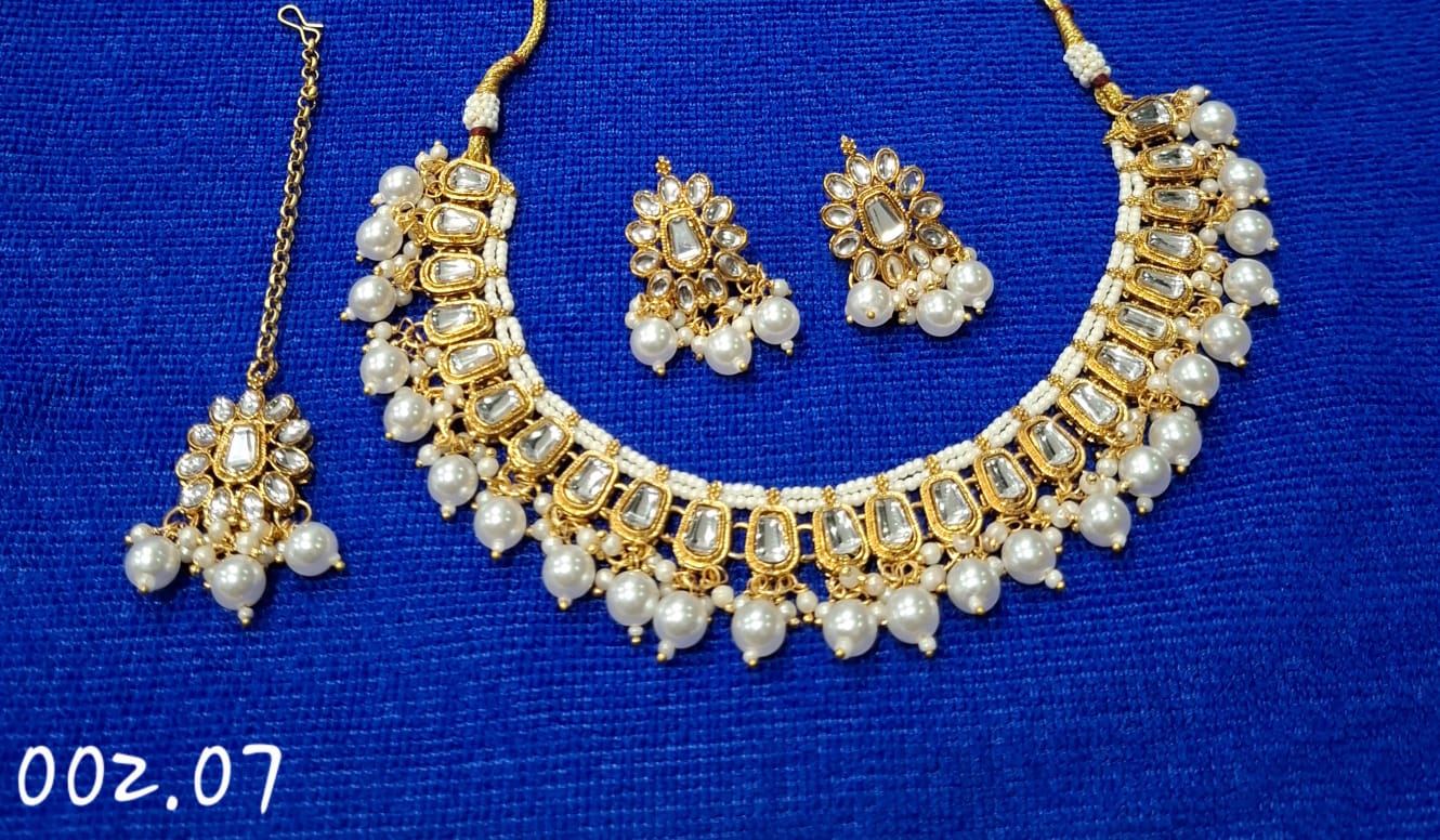 TRENDY KUNDAN CLEAR NECKLACE WITH EARRIING WITH MANG TIKA