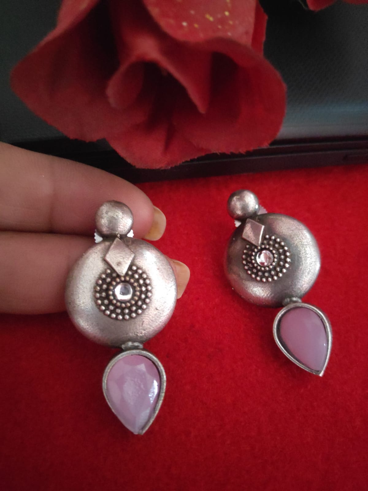 UNIQUE GERMAN SILVER PINK EARRING